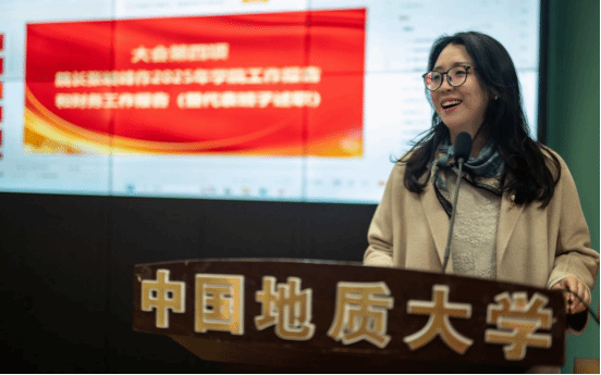 (通訊員 嚴蕾 王國念 攝影 吳錦文)1月9日下午,中國地質(zhì)大學(武漢)外國語學院第四屆第四次教職工大會暨工會會員大會在學院報告廳舉行,全體教職工和學生代表參加會議。學院黨委書記傅苑主持會議。