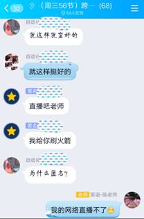 但真正的上課效果會(huì)怎樣呢?上課前的那天晚上,學(xué)生們熱心地在班級(jí)QQ群里分享了其他老師上課的各種好方法、好形式,有的學(xué)生還專門(mén)私信我,告訴我怎么使用一些教學(xué)軟件。感動(dòng)之余,我對(duì)自己的授課方式又產(chǎn)生了動(dòng)搖,不知道學(xué)生會(huì)否喜歡。第二天,我心懷忐忑地上完了第一次網(wǎng)課,再問(wèn)學(xué)生,四個(gè)班級(jí)無(wú)一例外地回復(fù):“陳老師,就這樣上!”