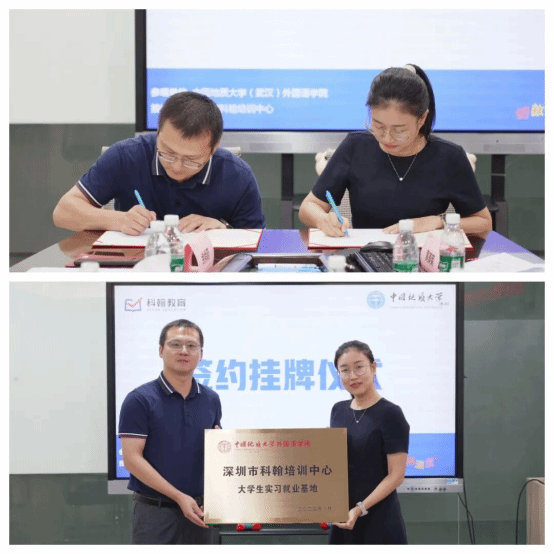 直至今年8月9日,中國(guó)地質(zhì)大學(xué)外國(guó)語(yǔ)學(xué)院黨委副書記余尚蔚、輔導(dǎo)員鄒蔚鶴一行與科翰校招團(tuán)隊(duì)齊聚一堂,共同見證實(shí)習(xí)基地協(xié)議簽訂與掛牌儀式的重要時(shí)刻。