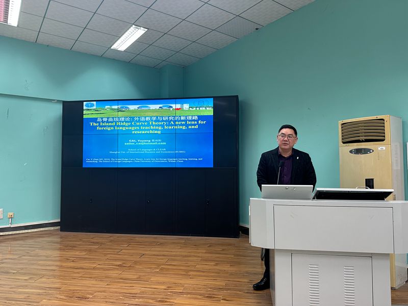 (通訊員/攝影 栗瀟萱)2024年11月26日下午,“南望今聲”外語(yǔ)論壇系列講座第71期在中國(guó)地質(zhì)大學(xué)(武漢)北區(qū)一樓學(xué)術(shù)報(bào)告廳成功舉辦。本次講座邀請(qǐng)了上海對(duì)外經(jīng)貿(mào)大學(xué)國(guó)際商務(wù)外語(yǔ)學(xué)院蔡雨陽(yáng)教授,帶來(lái)了主題為“島脊曲線(xiàn)理論:外語(yǔ)教學(xué)與研究的新理路”的學(xué)術(shù)報(bào)告。本次講座由外國(guó)語(yǔ)學(xué)院副院長(zhǎng)張伶俐教授主持,講座吸引了師生八十余人參加,現(xiàn)場(chǎng)學(xué)術(shù)氛圍濃厚。