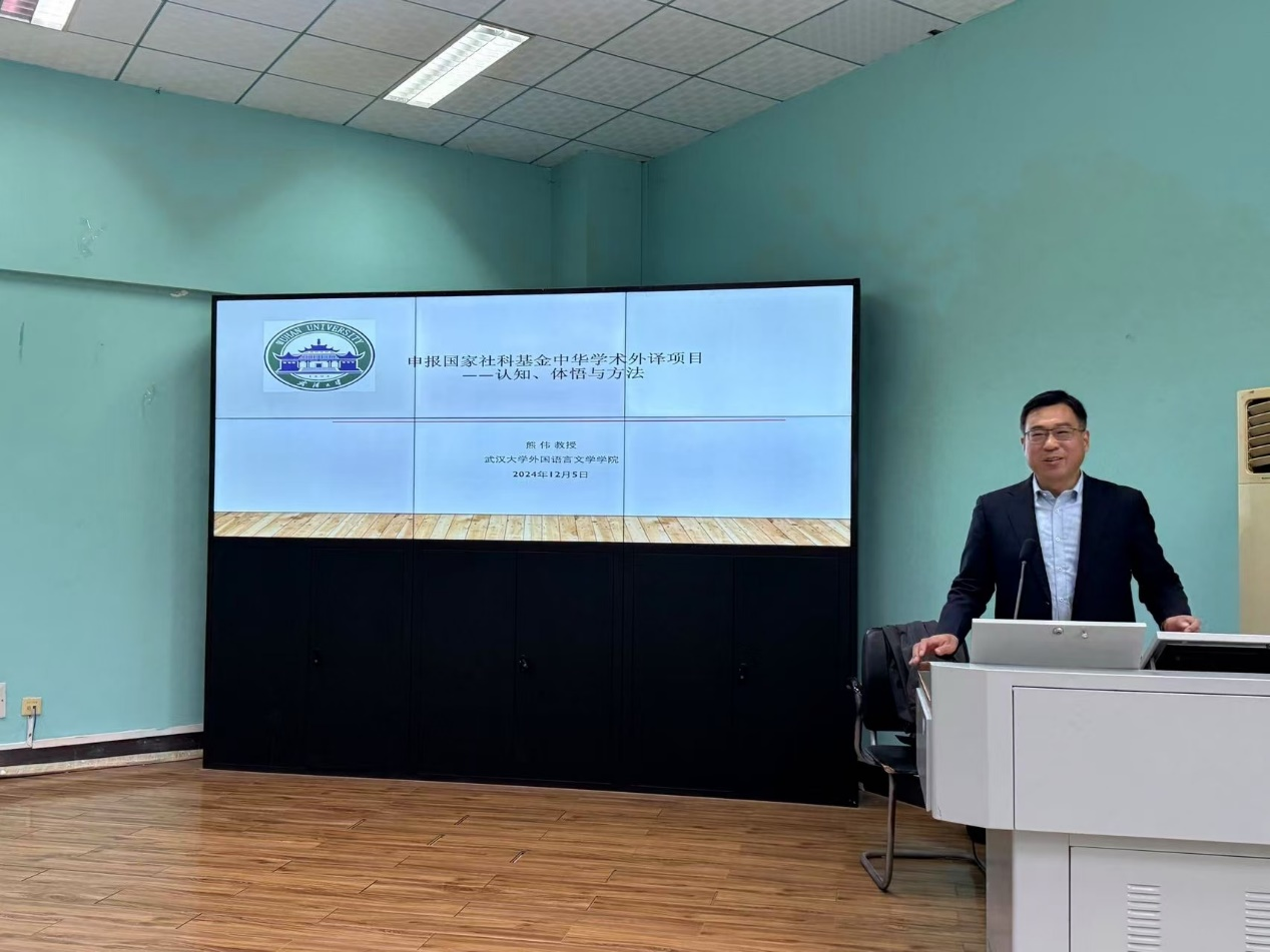 (通訊員/攝影 王曉)2024年12月5日上午9:00,中國地質大學(武漢)“南望今聲”外語論壇系列講座第七十二期在北一樓學術報告廳召開。主講人為熊偉教授,應邀來到中國地質大學(武漢)外國語學院開展了主題為“申報國家社科基金中華學術外譯項目:認知、體悟與方法”的精彩講座。此次講座由張峻峰院長主持,參會人員有相關專業(yè)老師以及全體研究生。