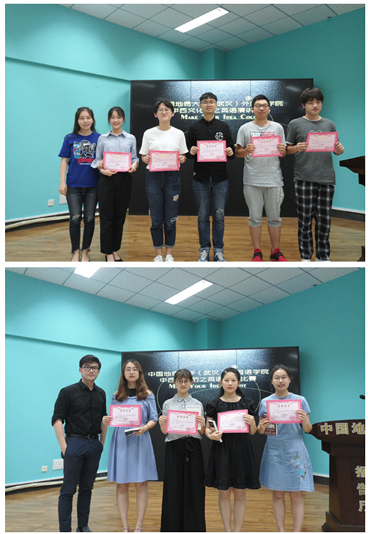 Make Your Idea Count:第十四屆中西文化節(jié)英語演講比賽成功舉行 (通訊員 鄭平)2018年5月31日晚7點(diǎn)半,外國語學(xué)院第十四屆中西文化節(jié)英語演講比賽在北一報(bào)告廳如期舉行,由馮迪和高幸老師擔(dān)任評委,共計(jì)9位選手參加比賽。 整個(gè)比賽流程分為定題演講和即興演講,在主持人崔顥介紹了評分標(biāo)準(zhǔn)后,選手按照抽簽順序進(jìn)行定題演講。本次的定題演講題目為The Era of Big Data:A More Opaque Society or A More Transparent One。選手們立意新穎,取材廣泛,分別從購物平臺、聊天軟件、攝像頭等角度出發(fā),給我們展示了大數(shù)據(jù)時(shí)代的方方面面。選手的演講中,梁聽雪同學(xué)清晰的結(jié)構(gòu)、肖麗民同學(xué)極富感染力的配樂與充沛的情感、梁司穎同學(xué)自然的肢體語言等給我們帶來深刻的印象,老師的提問也引發(fā)了在場所有同學(xué)的思考。 第二輪為即時(shí)演講,晉級的四強(qiáng)選手梁聽雪、肖麗民、梁司穎和鄧宇萱抽完簽,按順序拿到自己的題目,在準(zhǔn)備十五分鐘后開始了第二輪的演講。短短的十五分鐘,選手們卻能即時(shí)收集信息、清晰表明觀點(diǎn),需要的除了臨場應(yīng)變能力,更重要的是平時(shí)的積累,由此可見選手們豐富的知識積累以及對日常生活的關(guān)注,值得大家學(xué)習(xí)! 在緊張的計(jì)分排名期間,馮迪和高幸老師也給我們的同學(xué)帶來了滿滿的演講干貨。演講中,我們要明確自己形象的定位,在舞臺上大膽展示自我,“Just be yourself!”此外,在回答評委問題時(shí),所必需的是直面回答,而不是繞開問題,對于問題本身的其他觀點(diǎn)應(yīng)該是作為答案的補(bǔ)充。 最后,梁聽雪同學(xué)榮獲一等獎,并將代表學(xué)校參加華中七校外語文化節(jié)英語演講比賽決賽,肖麗民、梁司穎和鄧宇萱榮獲二等獎,鄭恬、黃鑠琳、張芝培、張道文、趙潤東獲得三等獎,同時(shí)現(xiàn)場還抽取了一名幸運(yùn)觀眾,前來助威的091172班的徐艷瓊同學(xué),得到了我們的大禮包。 回味著選手們精彩的演講時(shí)刻,沉醉于馮迪老師的紳士與高幸老師的幽默,隨著比賽成績的公布和現(xiàn)場幸運(yùn)觀眾的抽取,本次演講比賽落下帷幕。但北一報(bào)告廳里的燈仍未熄滅,那是選手們合影留念時(shí)的歡笑,是老師指導(dǎo)同學(xué)時(shí)的細(xì)語,是我們期待下一次你能勇敢嘗試的目光! 在活動中,同學(xué)們紛紛感悟到,演講其實(shí)并不是一件難以企及的事,只要敢于登臺,敢于展現(xiàn)自我,表達(dá)自己的思想,就邁出了一大步,而中西文化節(jié)永遠(yuǎn)是大家不斷嘗試、挑戰(zhàn)自我的舞臺!