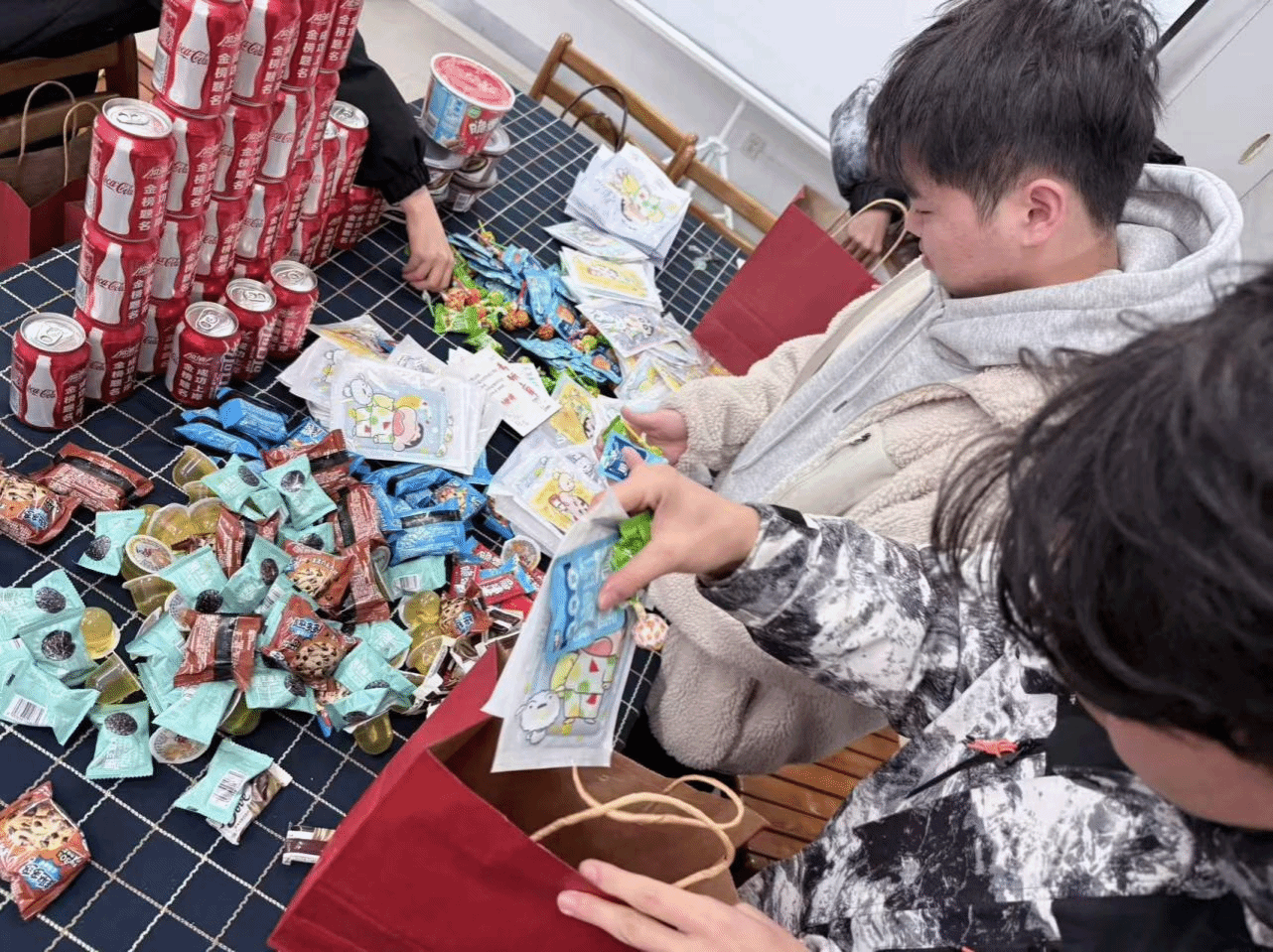 在活動開始之前,外國語學(xué)院團委學(xué)生會為此次活動做了充分的準(zhǔn)備,在北一樓110細致分裝禮物,將真心打包成一個個“考研加油包”。