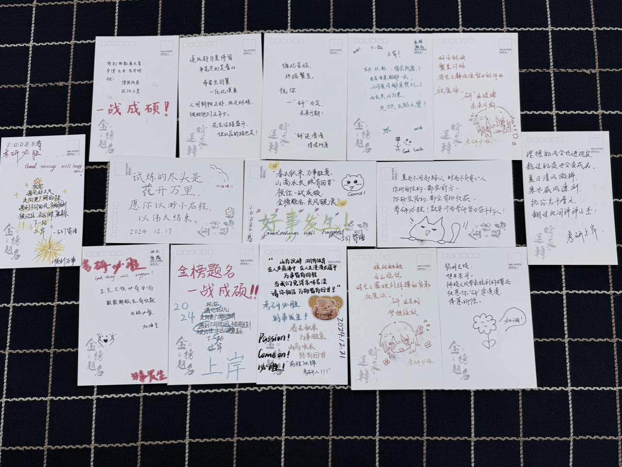 考研之路,如寒冬般孤寂,可溫暖的春日就在眼前。希望考研學(xué)子們能夠“暖寶”貼身寒意消,天天學(xué)習(xí)天天“棒”,“趣多”趣樂志高昂,考試如“德芙”般縱享絲滑,結(jié)果必定可喜“可樂”!此外,各位學(xué)弟學(xué)妹也精心書寫祝福賀卡,他們誠摯的祝福文字將會陪伴每一個考研外國魚!——此行必將蟾宮折桂,不負眾望!