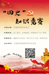 (通訊員 魏佳佳 李海涵)歷史是最好的教科書、營養(yǎng)劑和清醒劑。為深入學(xué)習(xí)貫徹教育部《關(guān)于開展“網(wǎng)上重走長征路”暨推動(dòng)“四史”學(xué)習(xí)教育的工作方案》,以及學(xué)校《關(guān)于在全體學(xué)生中深入開展愛國主義主題教育的實(shí)施方案》,外國語學(xué)院于2020年11月15日開展了線上學(xué)生黨員“四史”知識(shí)競(jìng)賽。本次競(jìng)賽為外國語學(xué)院的學(xué)生黨員們提供了一個(gè)學(xué)習(xí)黨史、新中國史、改革開放史、社會(huì)主義發(fā)展史的良好平臺(tái),全體學(xué)生黨員積極參與、認(rèn)真競(jìng)賽,為提升黨性修養(yǎng)水平提供根本依據(jù)和內(nèi)生動(dòng)力。