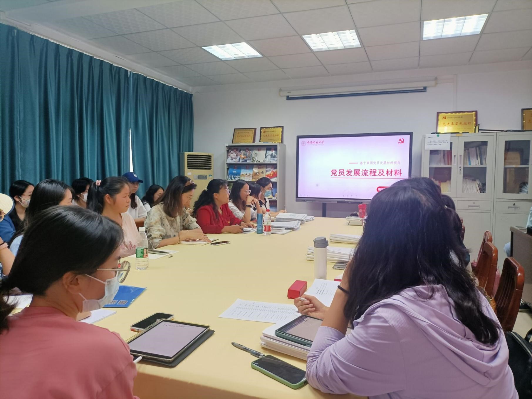 于老師為在場(chǎng)支委解讀了《中國(guó)共產(chǎn)黨發(fā)展黨員工作細(xì)則》、中國(guó)共產(chǎn)黨發(fā)展黨員工作流程圖、《發(fā)展黨員工作手冊(cè)》、學(xué)校《發(fā)展黨員工作指導(dǎo)手冊(cè)》等參考資料,緊接著,于老師從黨的組織、發(fā)展黨員工作中對(duì)黨組織的總體要求、發(fā)展黨員(學(xué)生)工作的意義和發(fā)展黨員中黨支部的作用這幾個(gè)層面闡述展黨員工作的總體要求。最后,于老師重點(diǎn)講解了黨員發(fā)展材料類型及材料審查應(yīng)重點(diǎn)關(guān)注的問(wèn)題,并與在場(chǎng)支委進(jìn)行交流,耐心解答支委們提出的相關(guān)問(wèn)題。