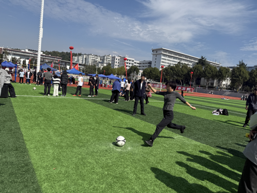 足球定點(diǎn)射門(mén)時(shí),他們氣定神閑,腳法精準(zhǔn),足球劃出的弧線贏得了場(chǎng)邊的陣陣喝彩。