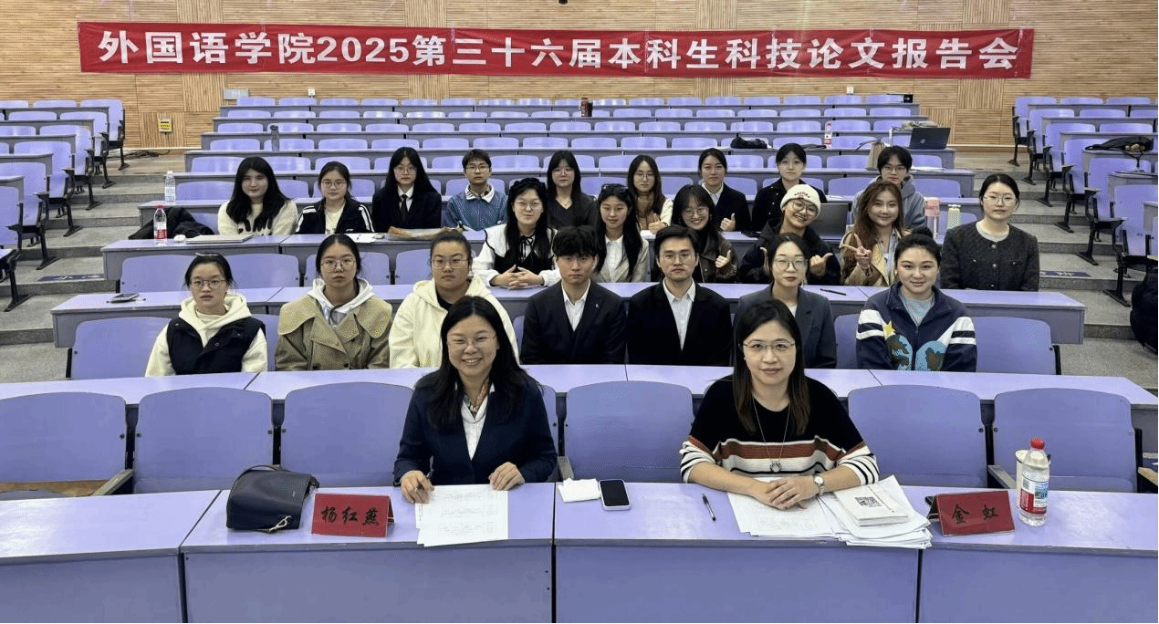 為進一步深化校園文化建設(shè),拓展學(xué)生學(xué)術(shù)視野,涵養(yǎng)科學(xué)家精神,提高學(xué)生科研素養(yǎng),10月26日,外國語學(xué)院舉辦第三十六屆本科生科技論文報告會。學(xué)院副院長楊紅燕、金虹擔(dān)任本屆科技論文報告會評委。共8支研究團隊入圍線下答辯。