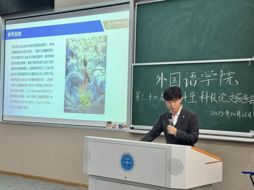 報告會正式開始,8名匯報人依次上場,參賽項目聚焦語言技術(shù)與文化傳播前沿領(lǐng)域,涵蓋非遺文化、教材研究及字幕翻譯等多個方向。現(xiàn)場展示中,各團隊圍繞研究背景、方法創(chuàng)新與實踐價值進行系統(tǒng)闡述,內(nèi)容詳實、邏輯嚴密。