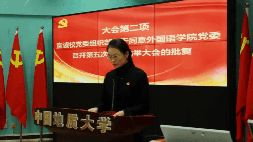會上,蔣懷柳宣讀學(xué)校《關(guān)于同意外國語學(xué)院黨委召開第五次換屆選舉大會的批復(fù)》。