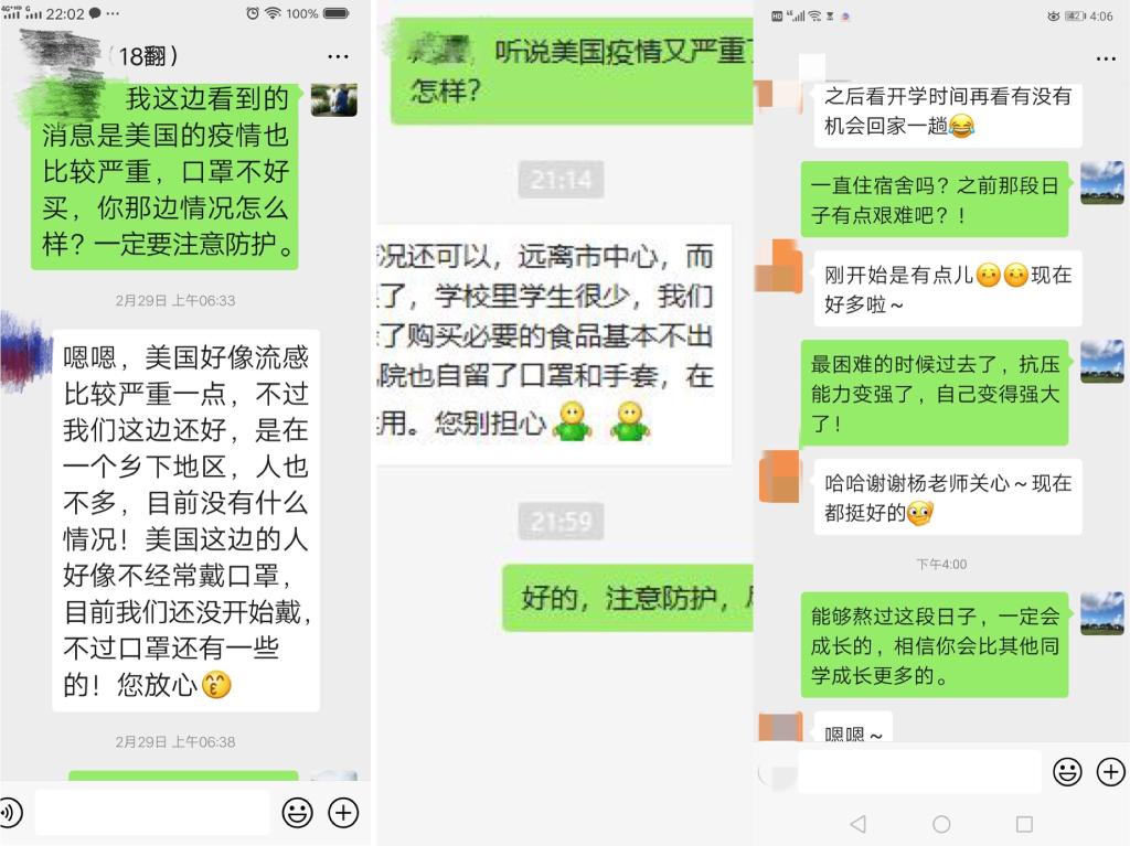 王偉老師和楊紅燕老師密切關(guān)懷身在美國和滯留學(xué)校的學(xué)生